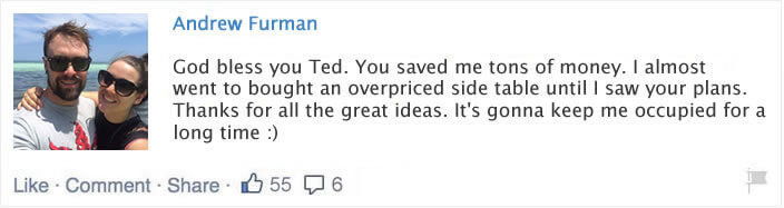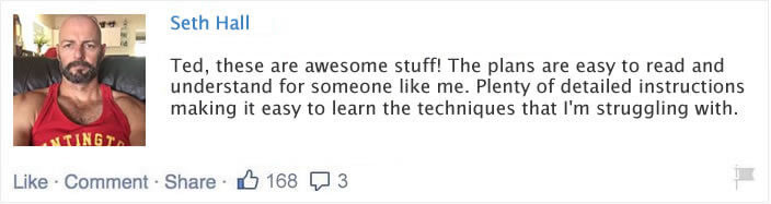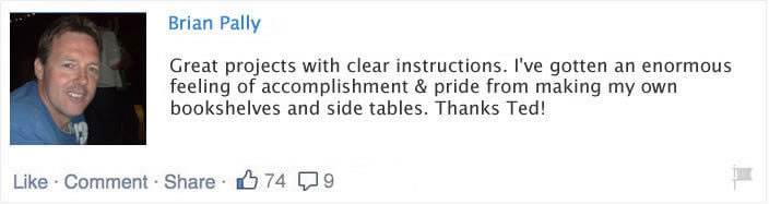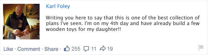 “I’ve read numerous books and bought several online woodworking plans and this is clearly the best that is on the market in every aspect. It has got lots of different ideas and inspiration. Plans are detailed and the instructions are in-depth.